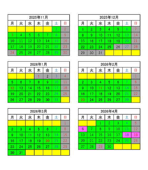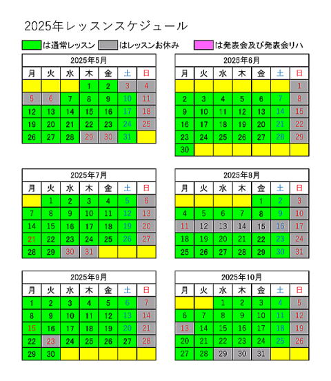 (曜日によってのレッスン回数の違いはありません。)